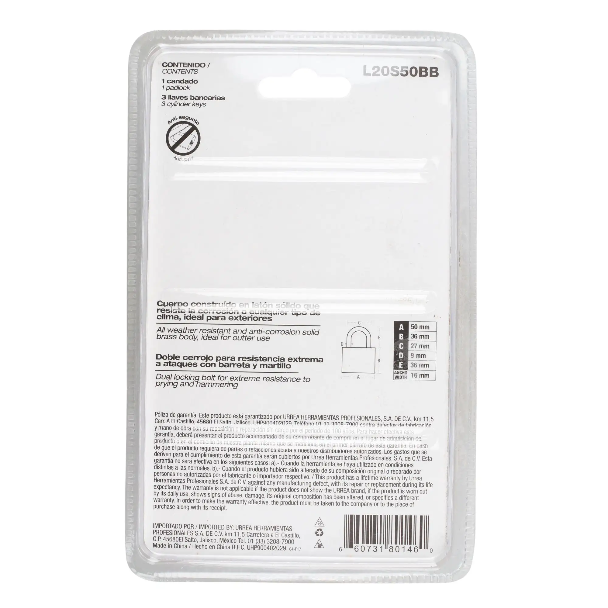 CANDADO DE LATON 50MM MODELO:L20S50BB LOOK/SURTEK – L20S50BB